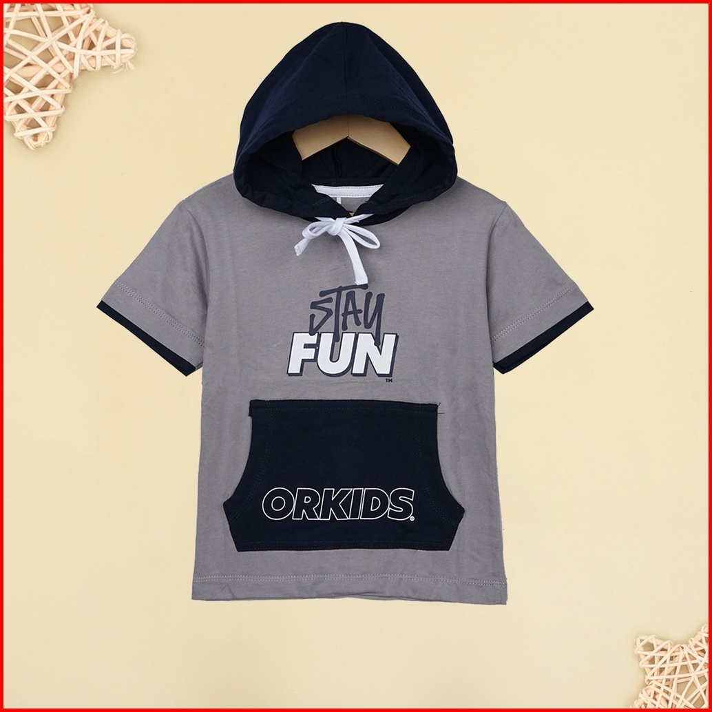 Kaos Distro Anak Laki Laki Umur 10 Tahun Baju Hoodie Anak Kupluk Orkids Motif Simpel Stuy Grey