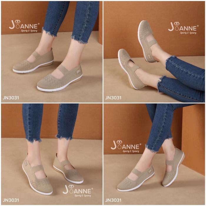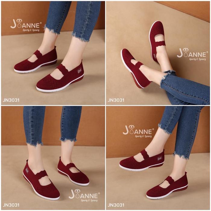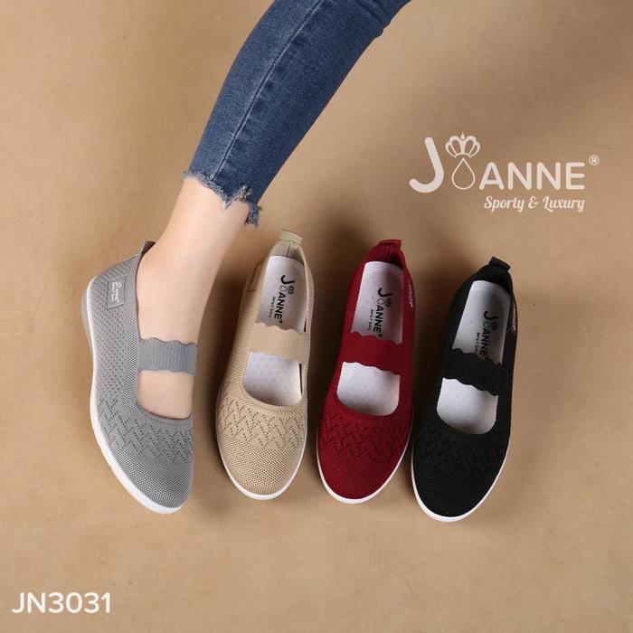 DP 0 JOANNE FLYKNITS FLAT SHOES WANITA JN3031 BLACK MERAHBLACK 36