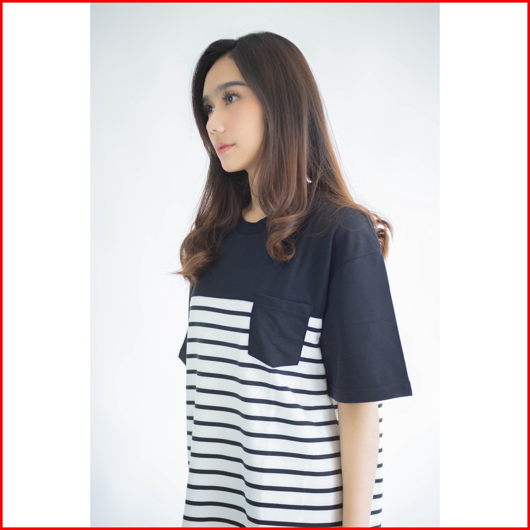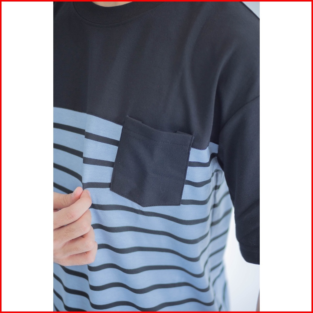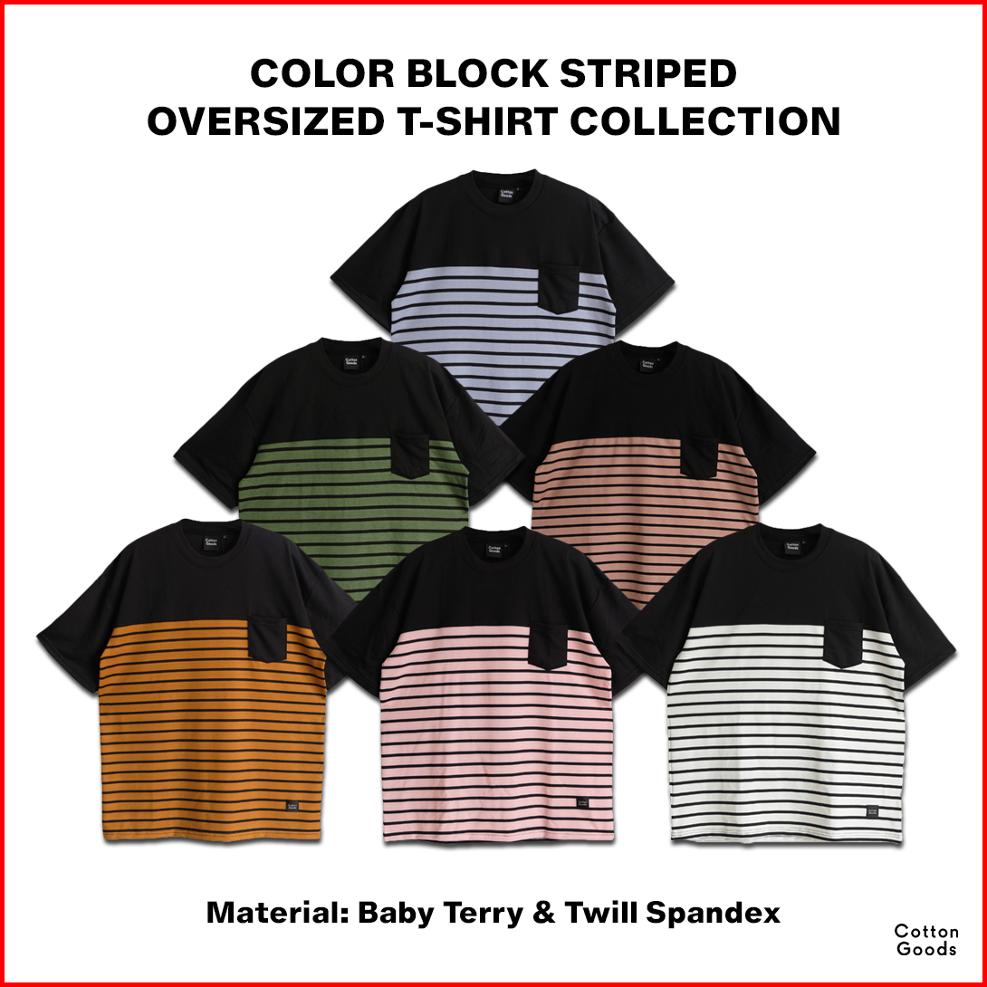 Cotton Goods Kaos Saku Oversize Striped Oversized Pocket Color Block Baby Terry Twill Spandex