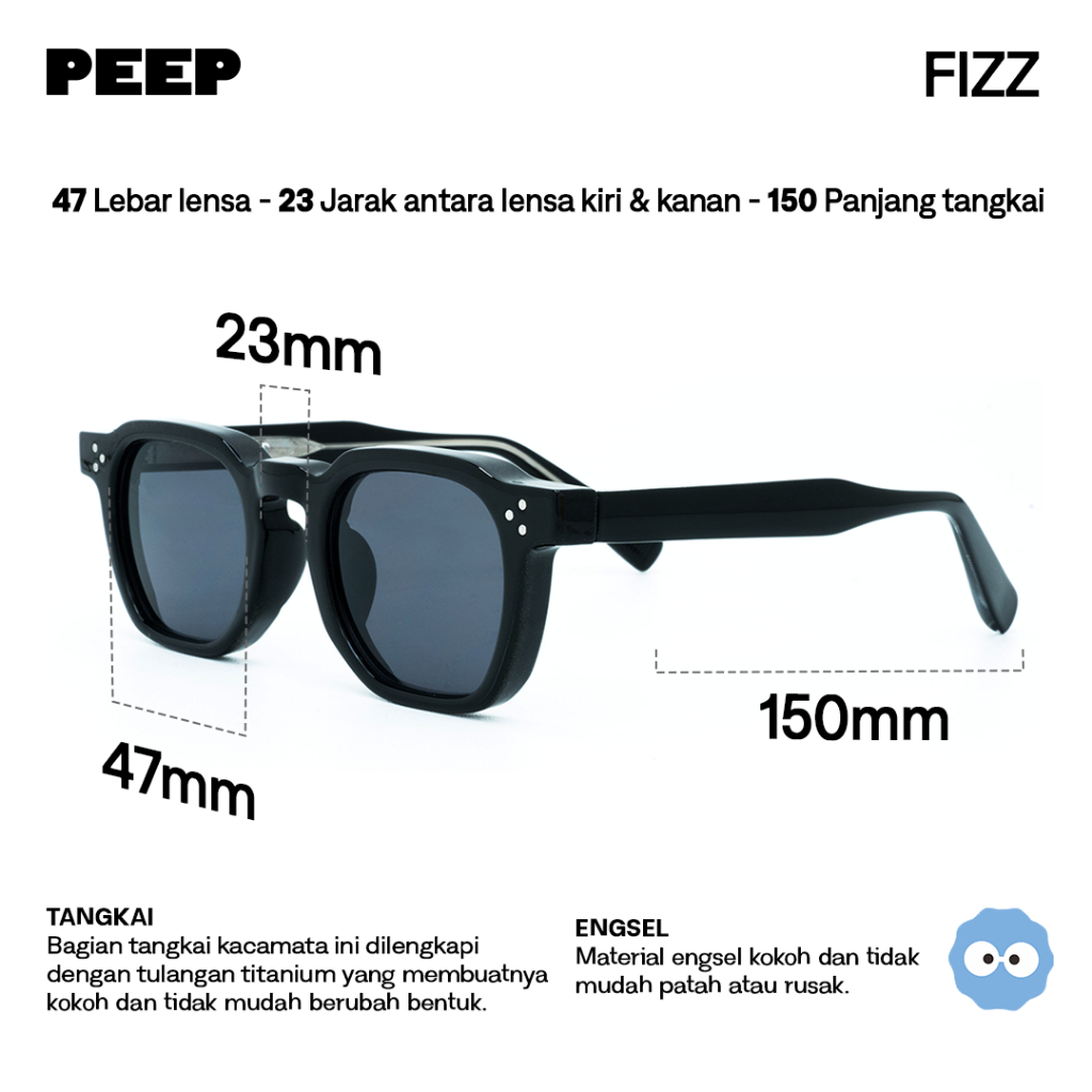 Peep Eyewear - Fizz Frame Kacamata Hitam / Sunglasses Unisex / Pria Wanita