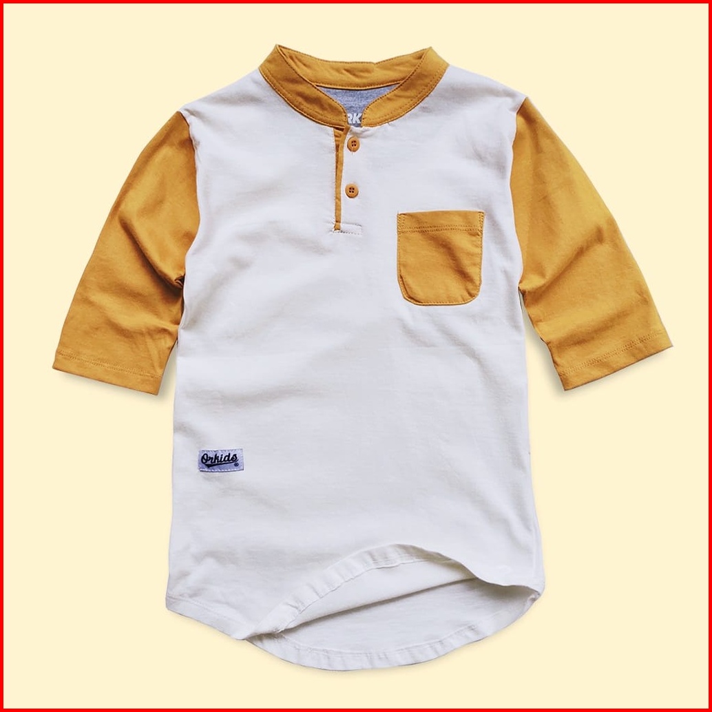 Baju Koko Kurta Anak Laki-laki Muslim 1 -12 Tahun Bahan Kaos Kerah Mandarin Lengan 3 4 Pakain Syna