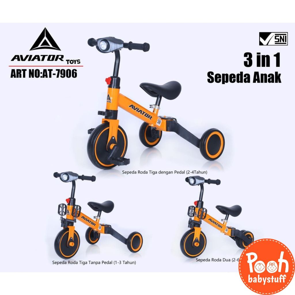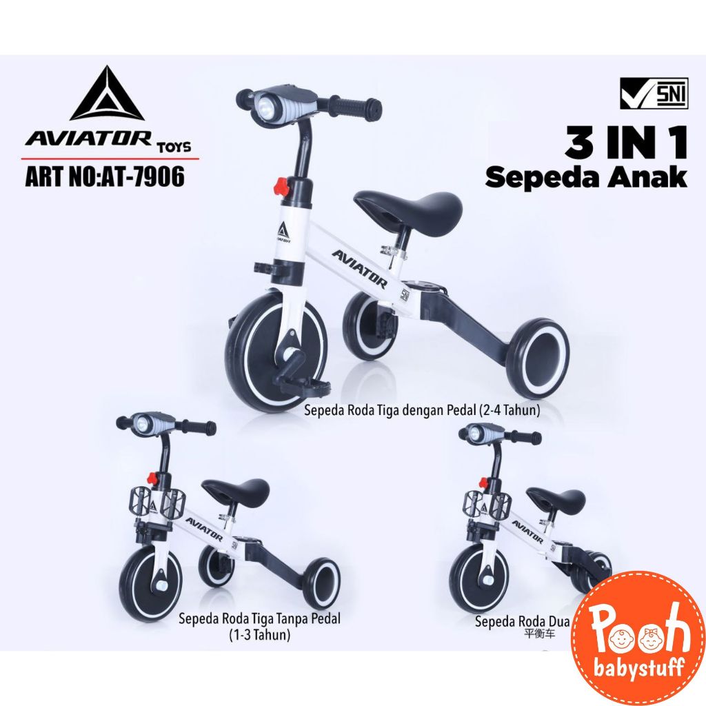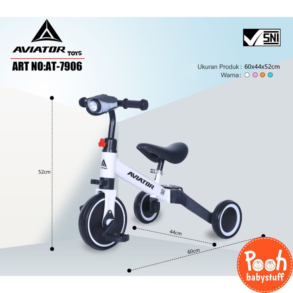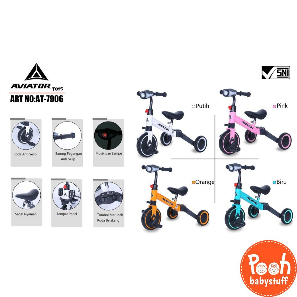 [Star] SEPEDA ANAK (ADA LAMPU DAN MUSIK) BALANCE BIKE (3 IN 1) AVIATOR AT 7906