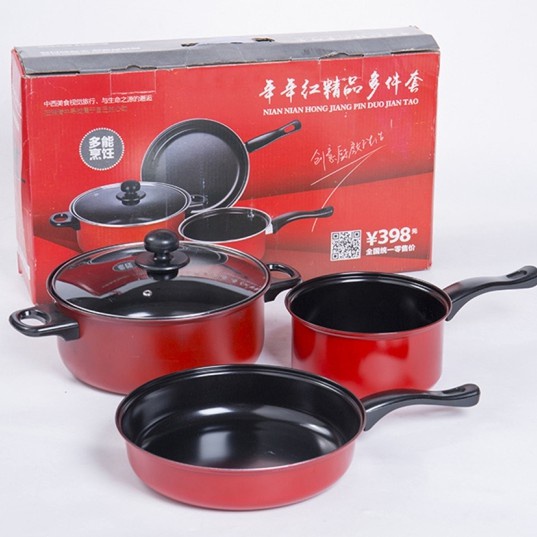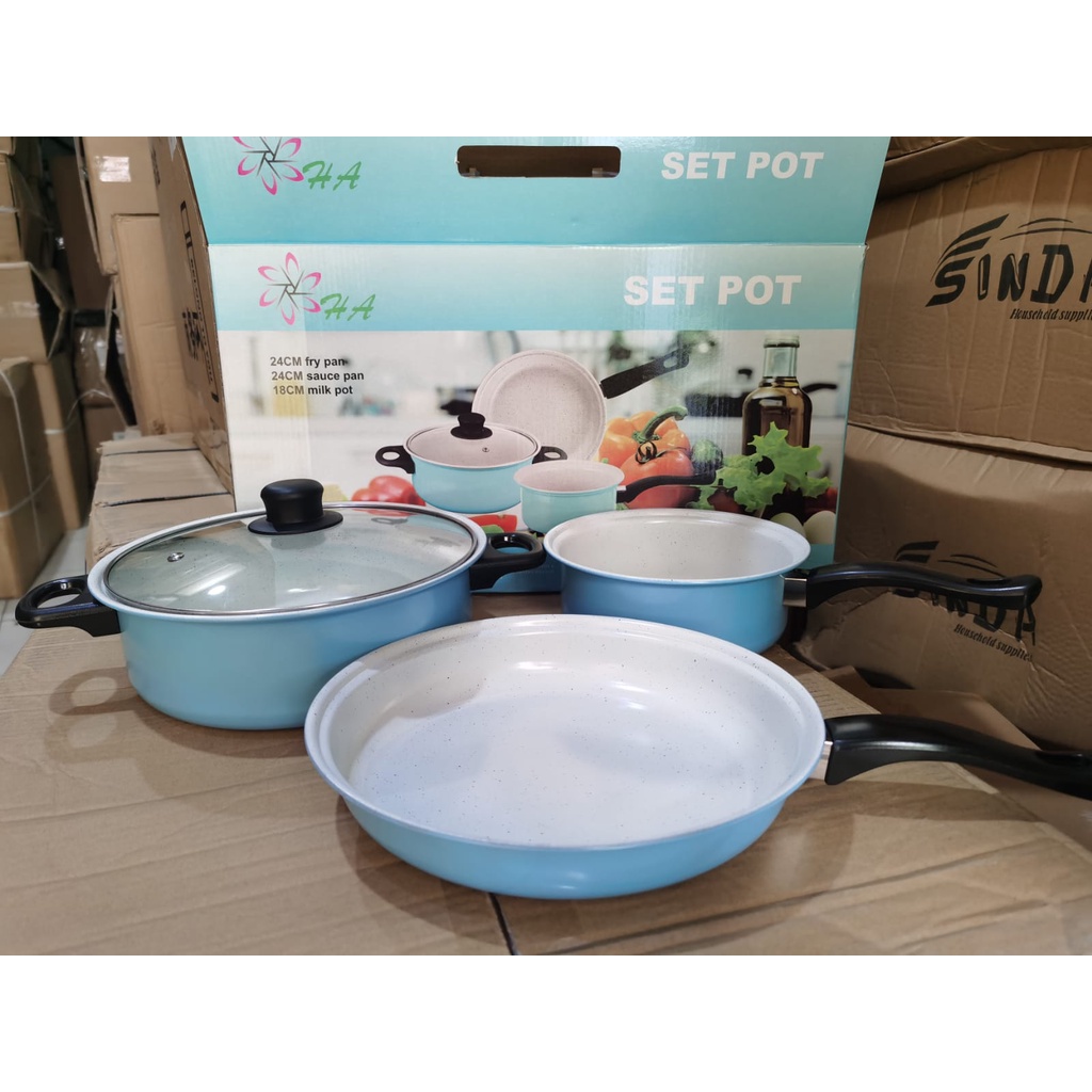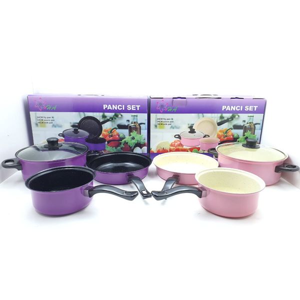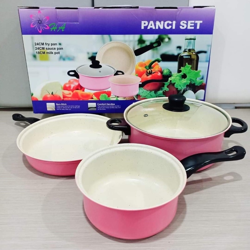 OS -D307- Panci 3 Set Wajan Teflon Stainless Steel Cookware - Panci Wajan Set isi 3pcs