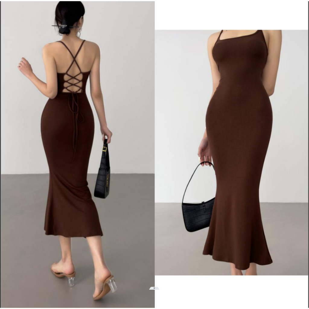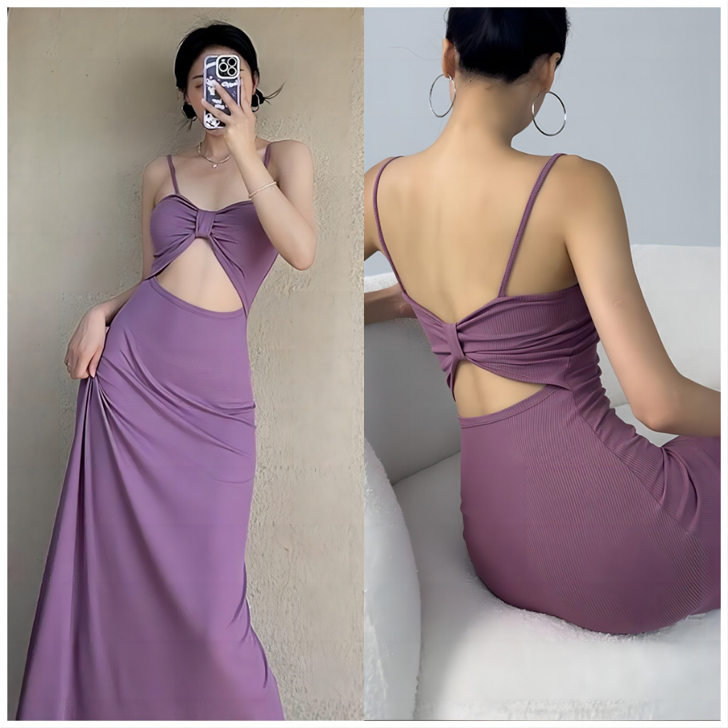 Baju Korean dress dress y Pas Body Serut tanpa lengan midi dress terbaru 2025 big size hitam pantai backless dress