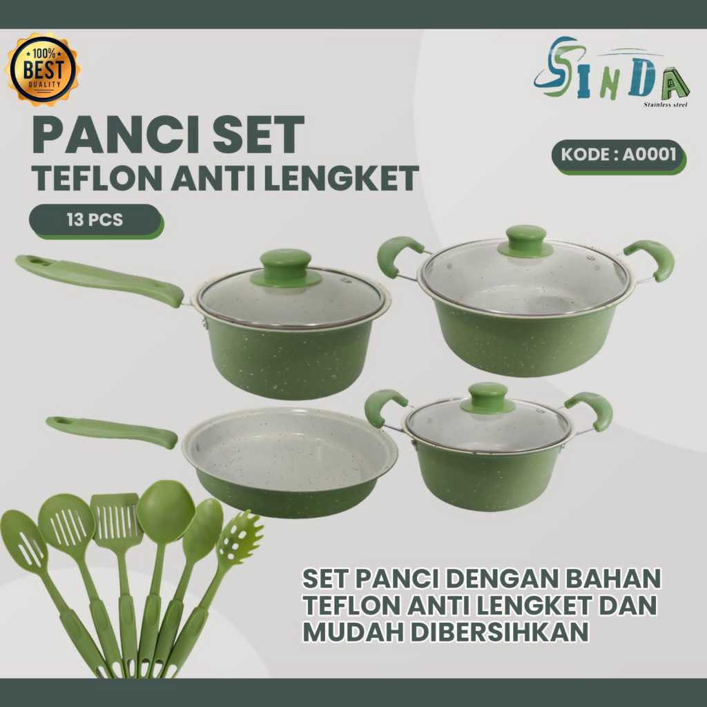 INDOLINE - COOKWARE SET 13PCS - PERALATAN MASAK PANCI SET - PANCI SET SPATULA TEFLON HIGH QUALITY ANTI LENGKET - SOUVENIR PANCI SET