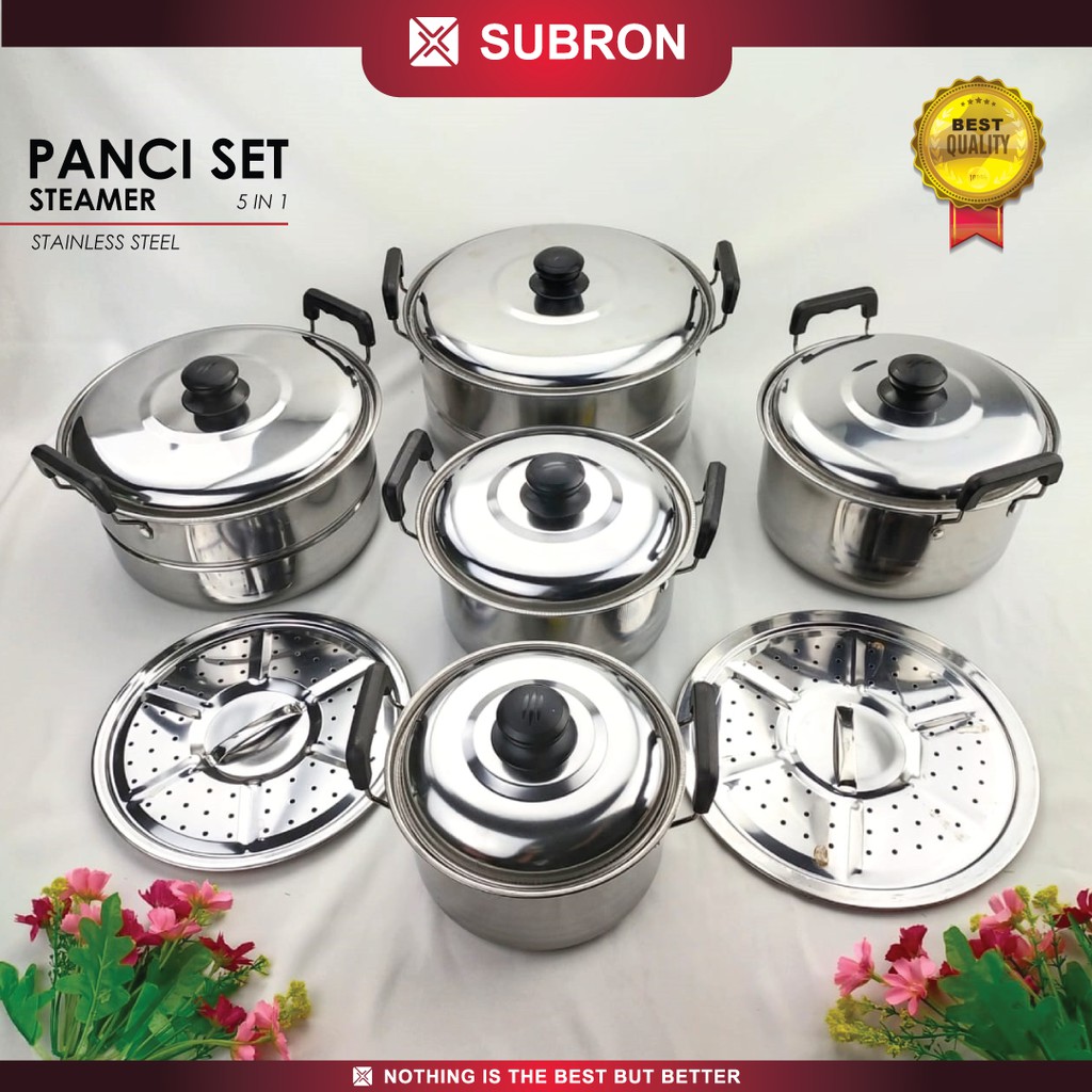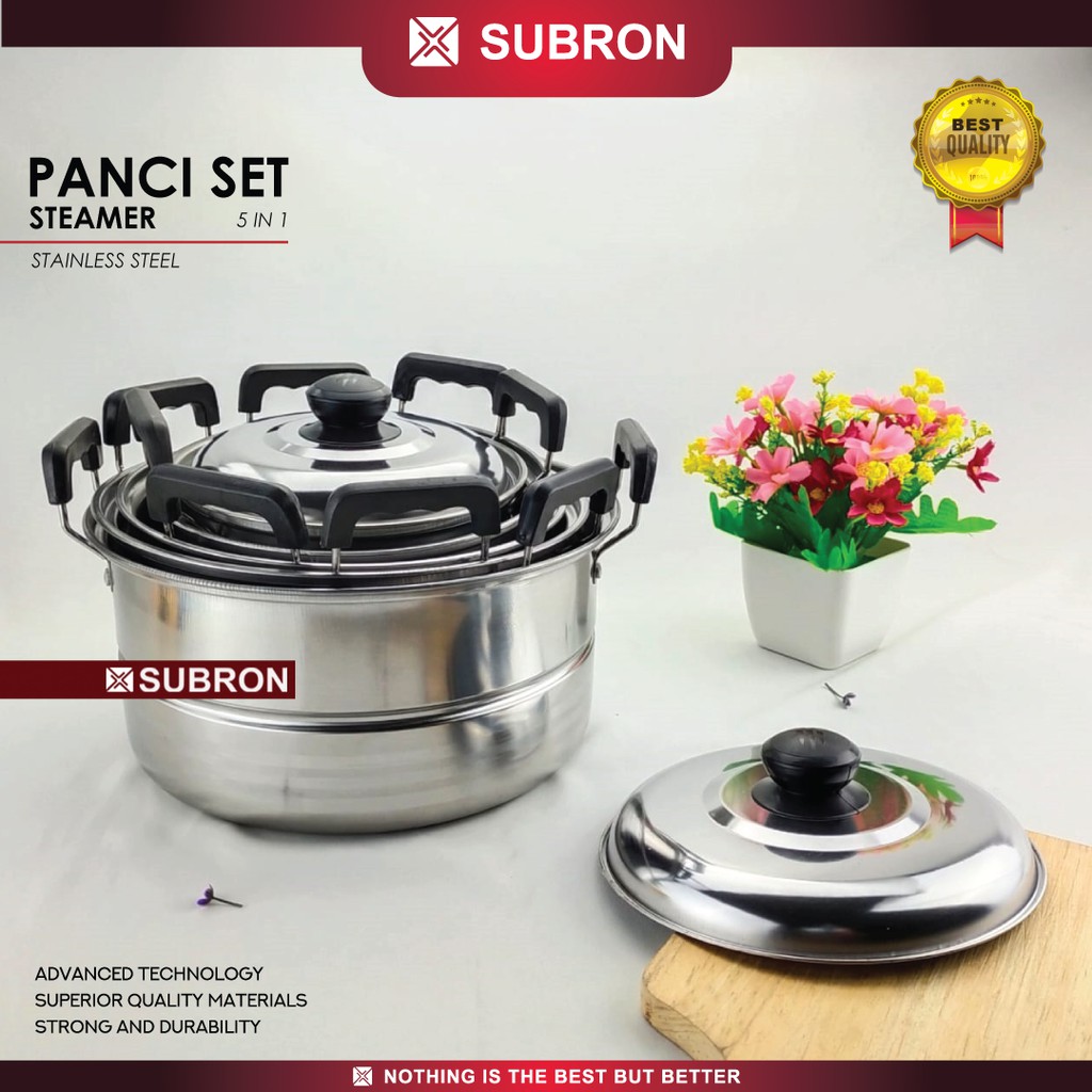 SUBRON Panci Set 5 IN 1 Panci Sup Kukus Stainless Steamer Soup pot