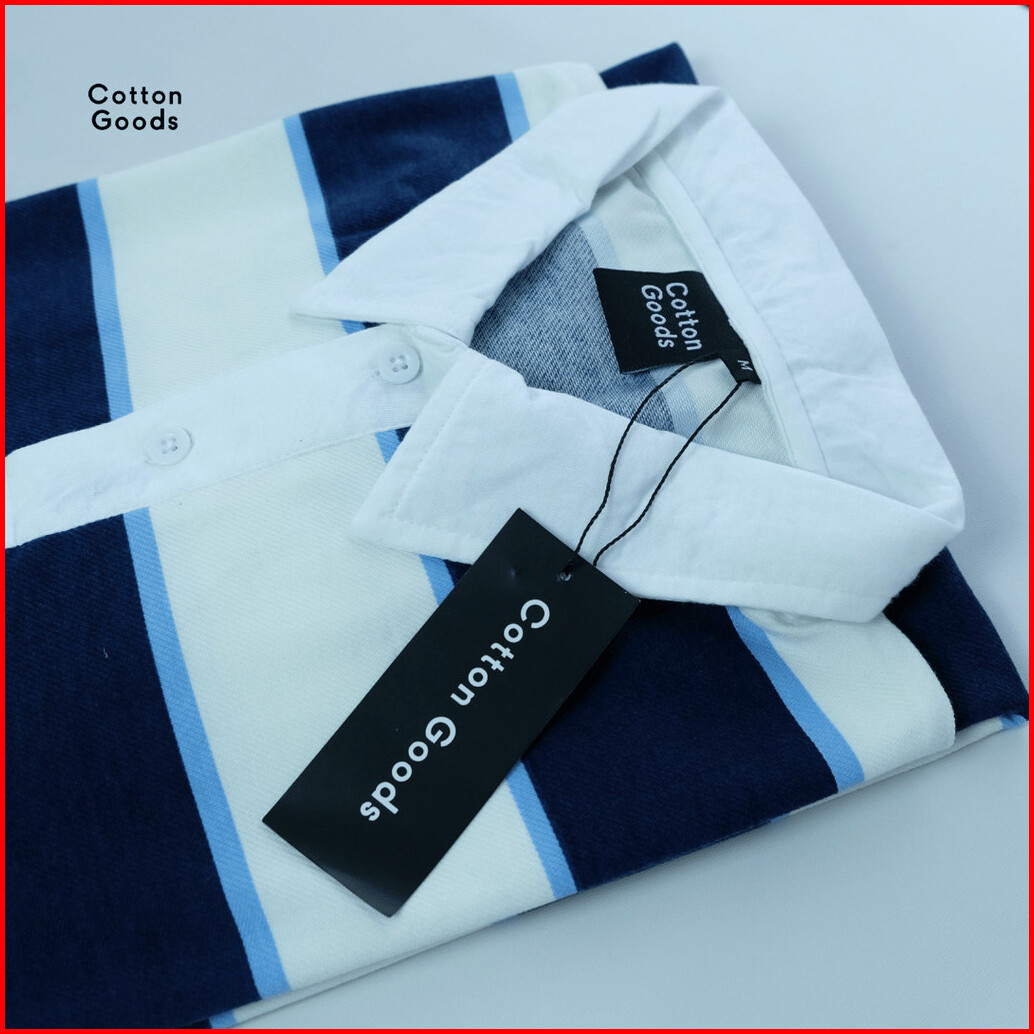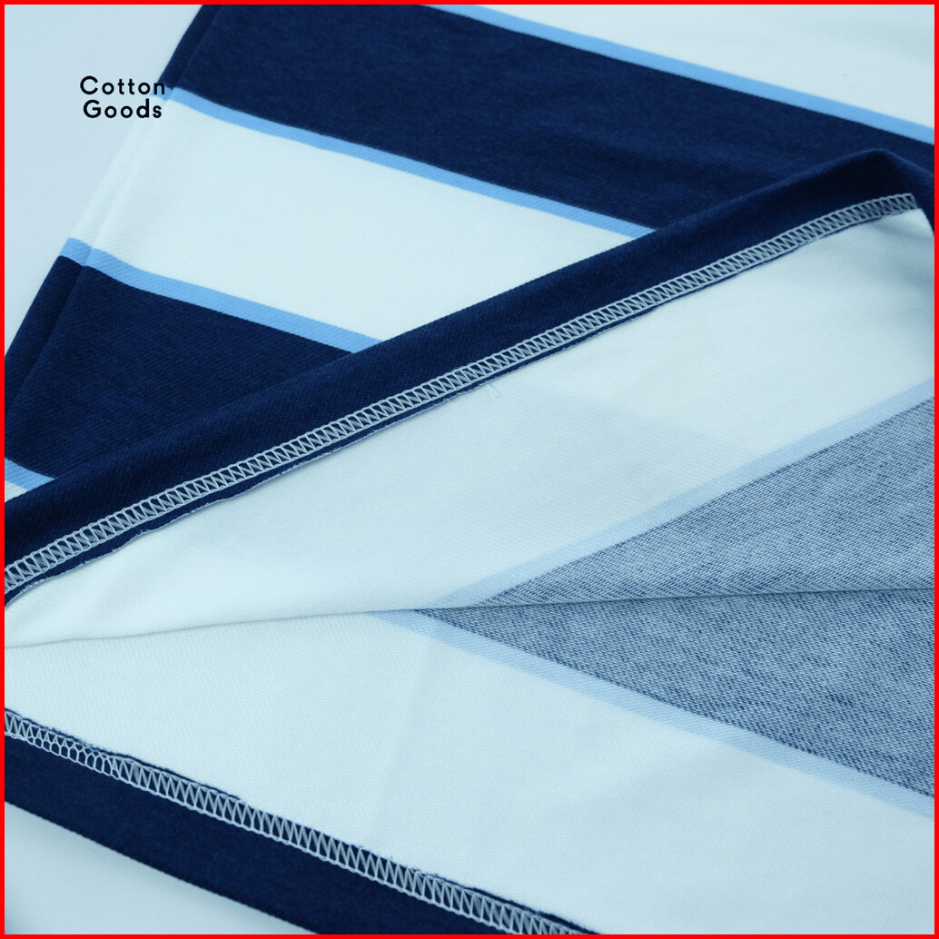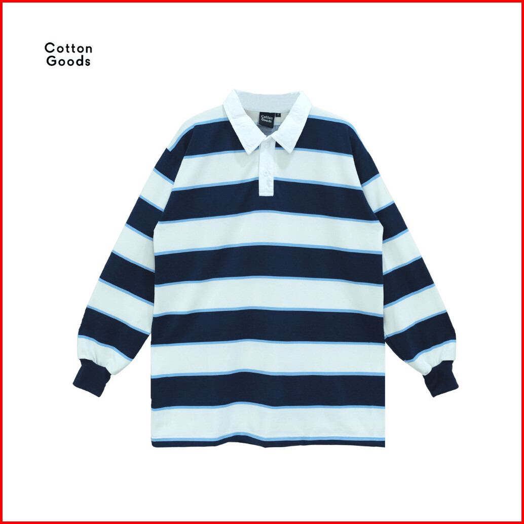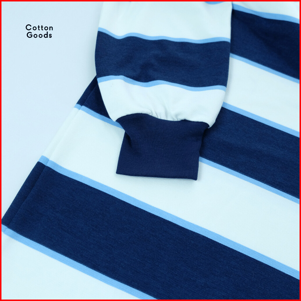 Cotton Goods Kaos Panjang Striped Rugby Twill Spandex Easy Bw Navy Blue Longsleeve