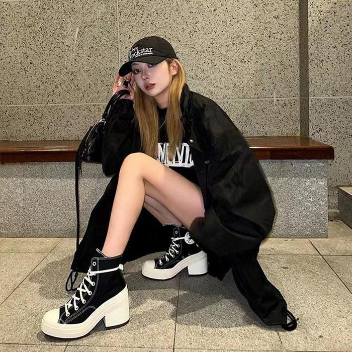 DP 0 PINKEY P320 SEPATU BOOTS TINGGI UNTUK WANITA TRENDY MODEL KOREAN STYLE DENGAN BAHAN KANVASHITAM PUTIH SHOES