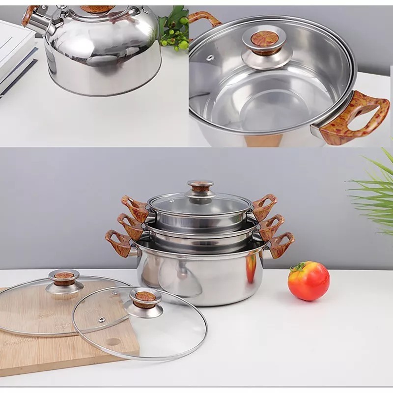 Panci Teko Set Stainless Steel 12 Pcs Anti Lengket Panci Teflon Cookware Frypan Saucepan