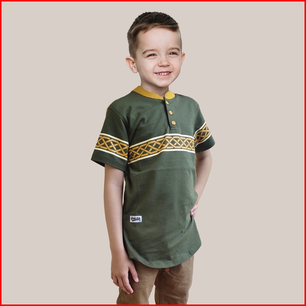 Buju Koko Anak Kaos Kurta Muslim Laki-laki 1- 12 Tahun Kerah Mandarin Shanghai Orkids Meiza Green