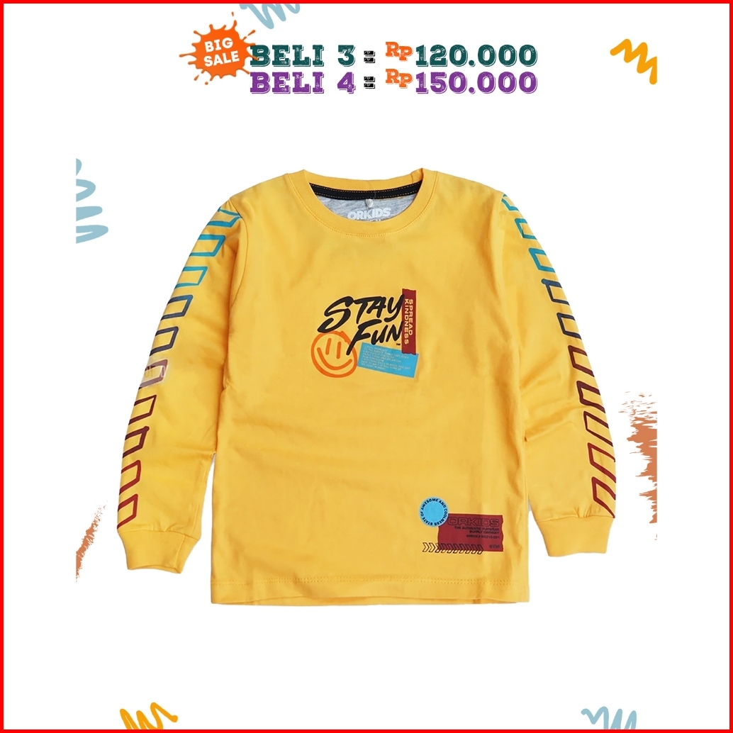 Kaos Anak Lengan Panjang Usia 1 - 12 Tahun Laki-laki Perempuan Katun 24s Orkids Stritz Yellow