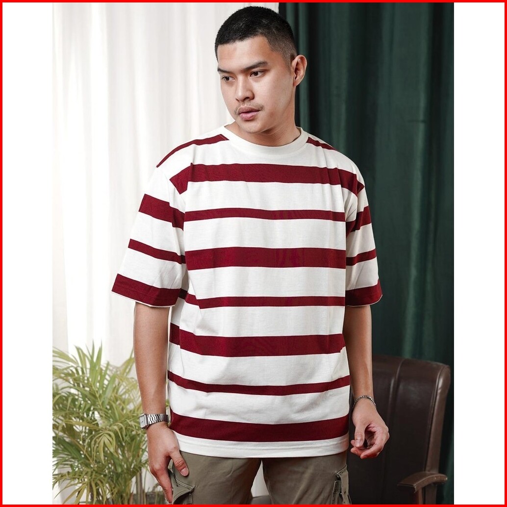 Matsuda Kaos Oversize Stripe T Shirt Narashino Burgundy
