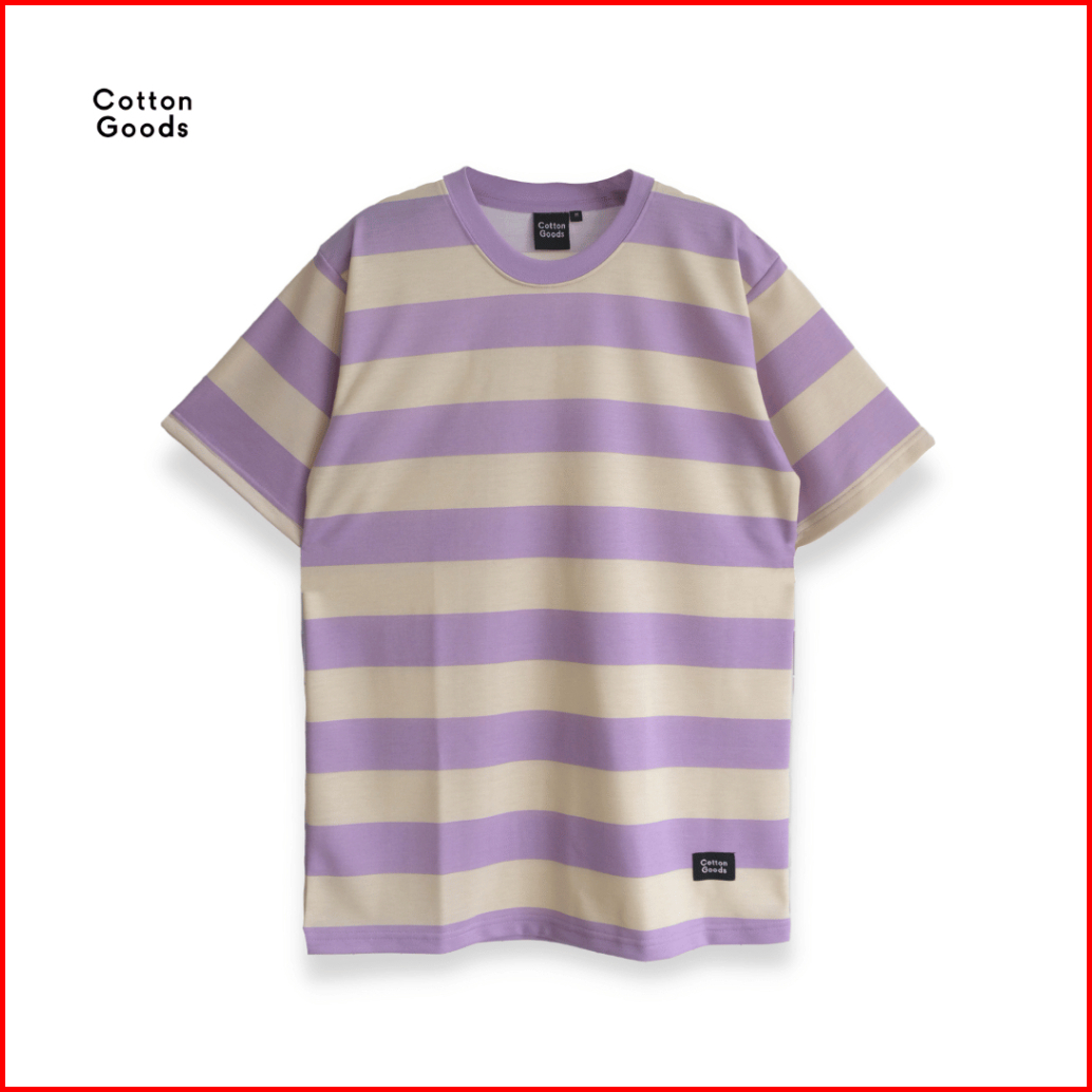 Cotton Goods Kaos Oversized Striped Pastel Baby Terry Binara Lilac Beige Tees