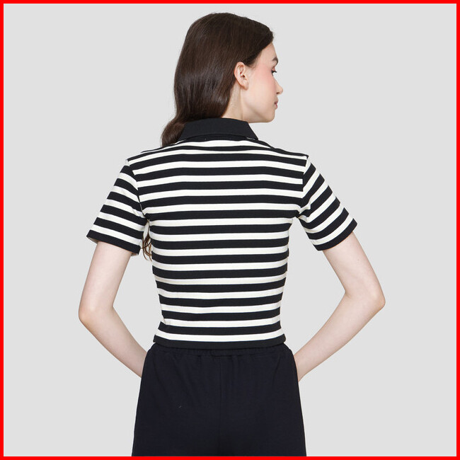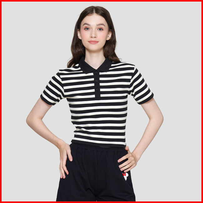 Nevada Stripe Crop Kaos Kerah Wanita 121494232