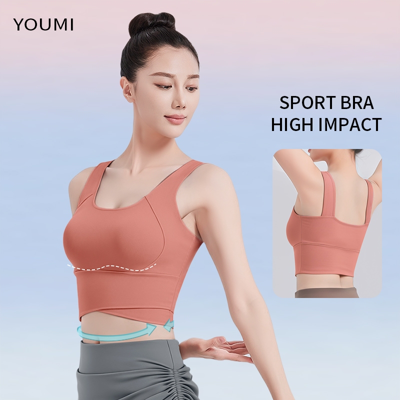 Youmi Sport Bra Wanita Push-Up High Impact Gym Yoga Senam Fitness Running Tennis Pilates Bh Olahraga Tanpa Kawat Kemben
