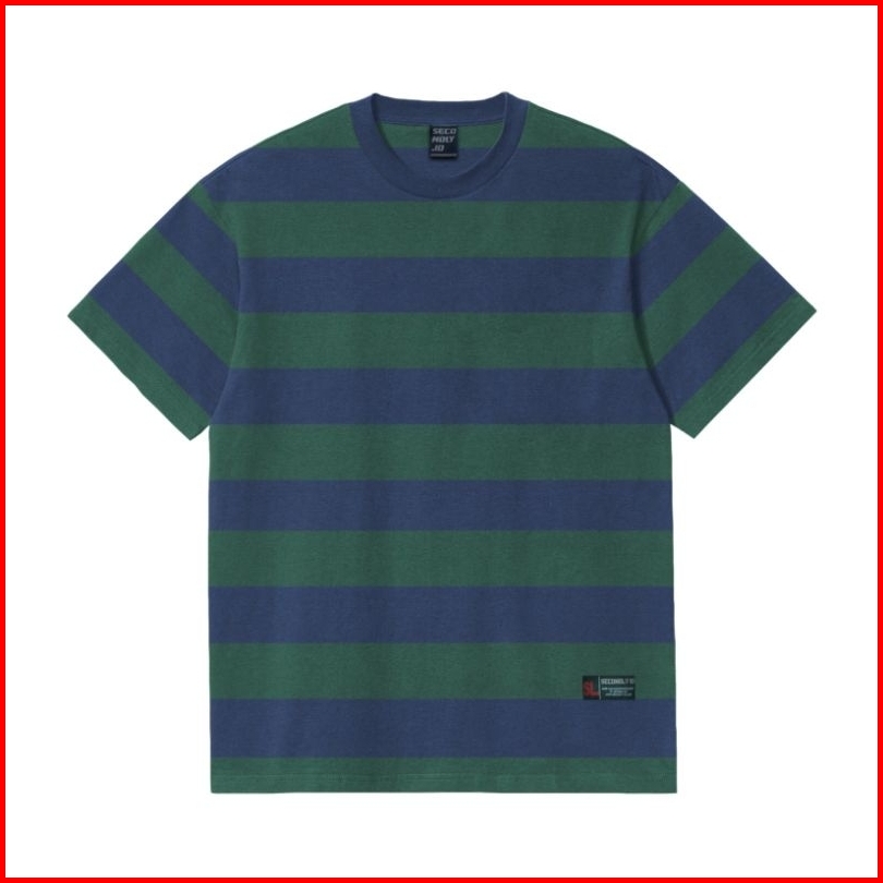 Secondly.id Kaos Salur Garis Besar Lengan Pendek Jumbo Tshirt Stripe Hijau Navy 24s