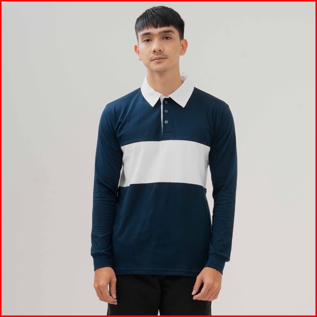 Cotton Goods Kaos Panjang Vintage Rugby Polo Shirt Long Sleeve