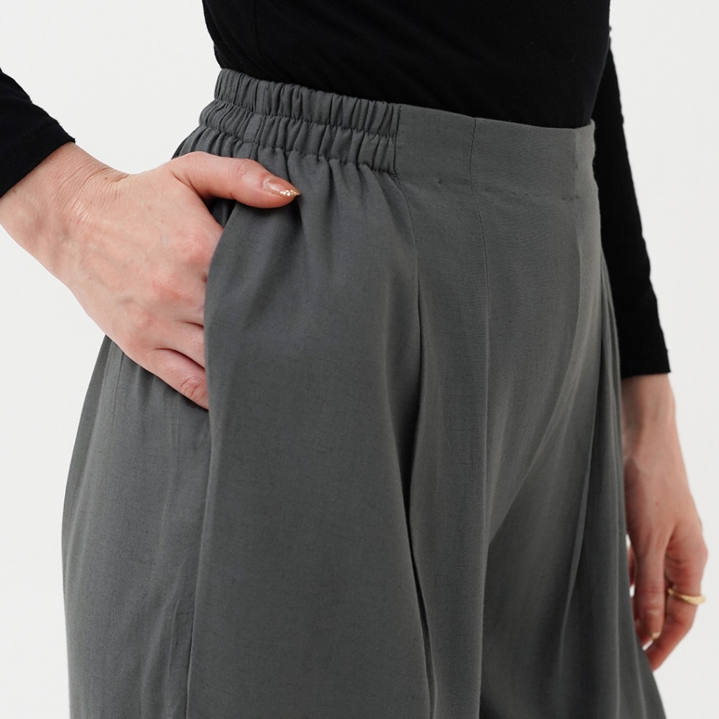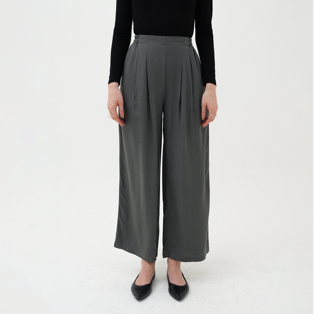 Queensland Double Pleated Pants Celana Bahan Kulot Wanita LIN000416Q Abu Tua