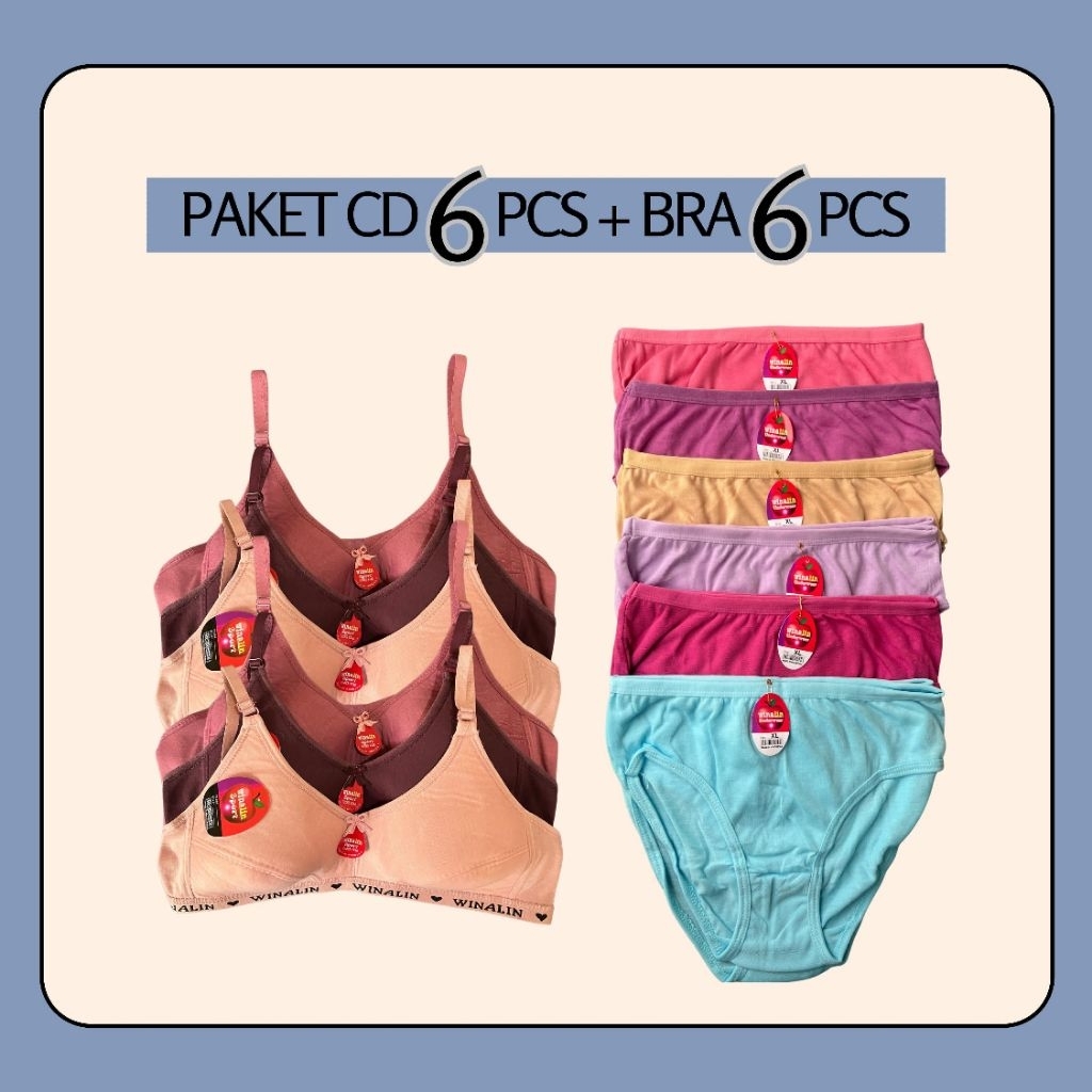 6Pcs Cd + 6Pcs Sport Bra Tanpa Kawat Winalin/Nazwa Dalaman Wanita Set
