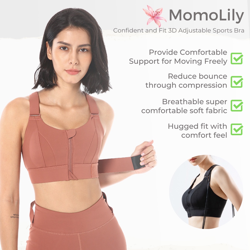 Momolily Sport Bras Adjustable Waist Band Rust Sport Bra Wanita Premium