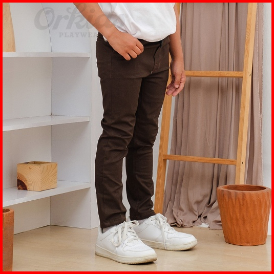 Celana Chinos Anak Laki-laki Panjang Umur 10 Tahun Bahan Katun Pinggang Pakai Karet Mamo Brown
