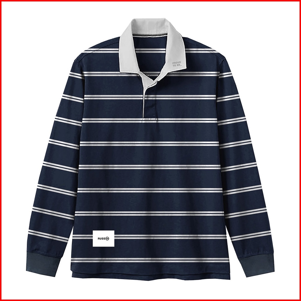 Russ Poloshirt Rugby Pria Stripe Garis Scrum Navy Blue Up To Big Size