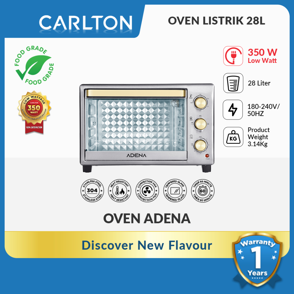 Carlton ADENA Oven Listrik 28L Dilengkapi Kipas & Api Atas Bawah