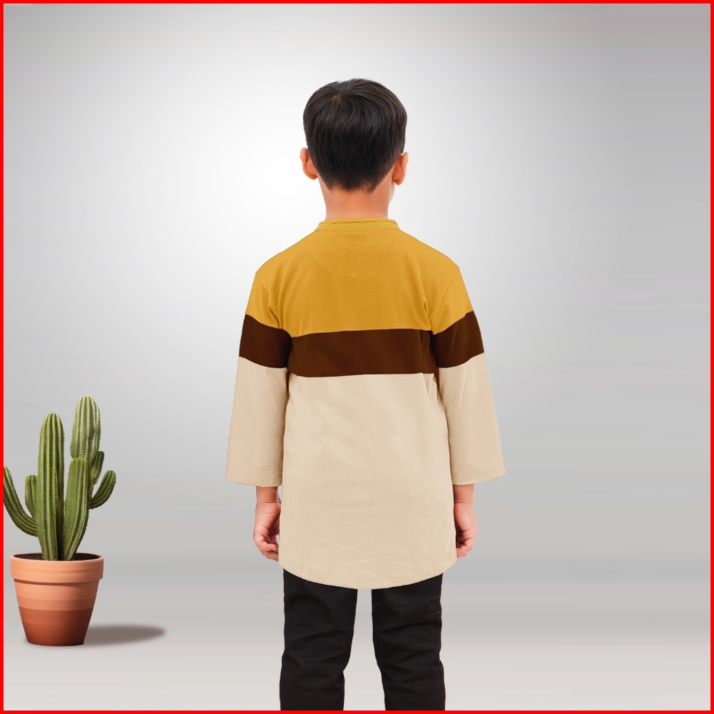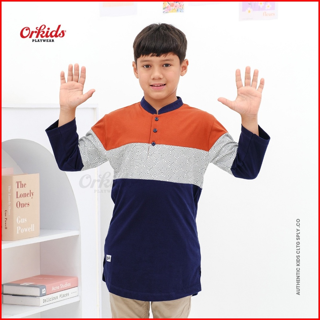 Baju Koko Kaos Kurta Anak Laki-laki Muslim Umur 1 - 12 Tahun Kerah Mandarin Lengan 3 4 Orkids