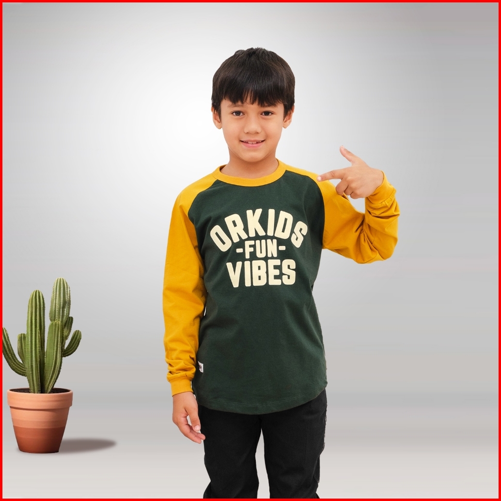 Kaos Lengan Panjang Anak Laki-laki Umur 10 Tahun Orkids Kaos Distro Anak Funvibes Only Green