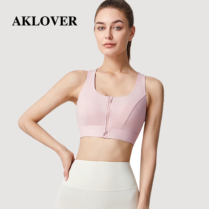 Aklover Tank Top Bra Olahraga Kebugaran Penyerap Guncangan Tinggi Ritsleting Bantalan Dada