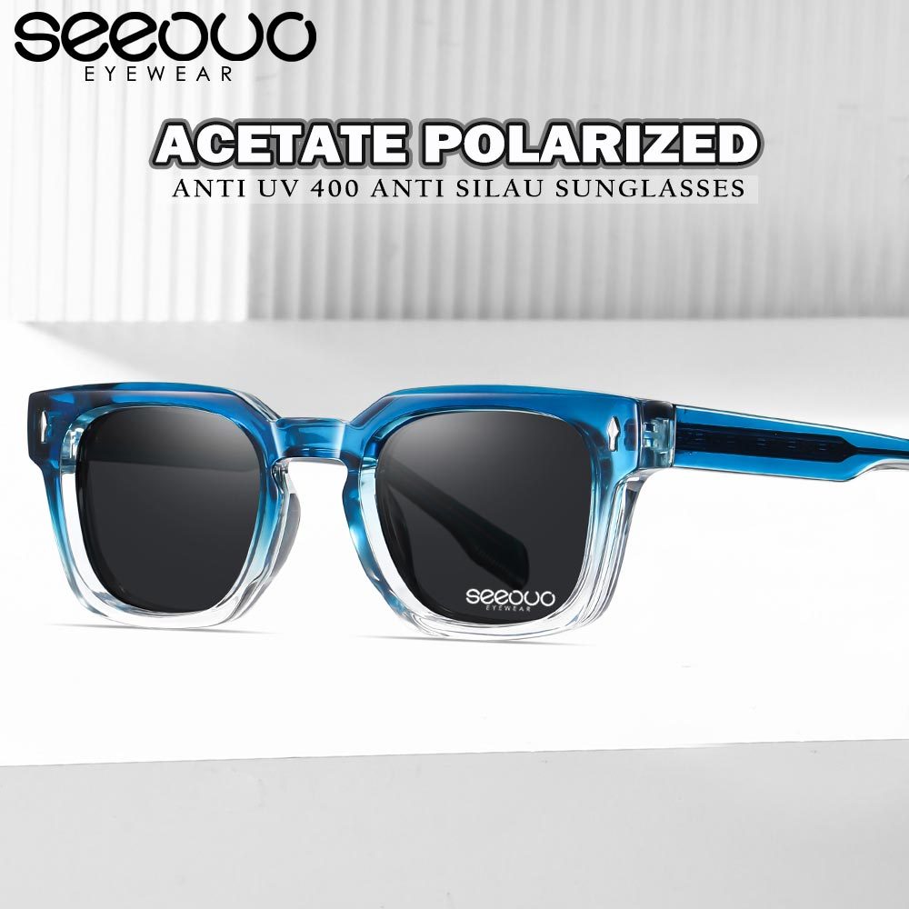 Seeouo Sunglasses Anti UV 400 Bentuk Kotak Stylish Simple Fashion Pria dan Wanita Keren Polarized Anti Silau Frame