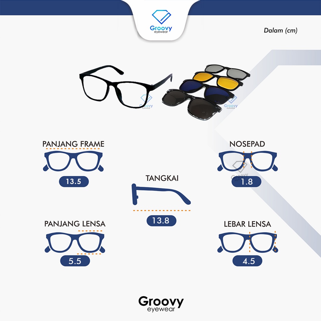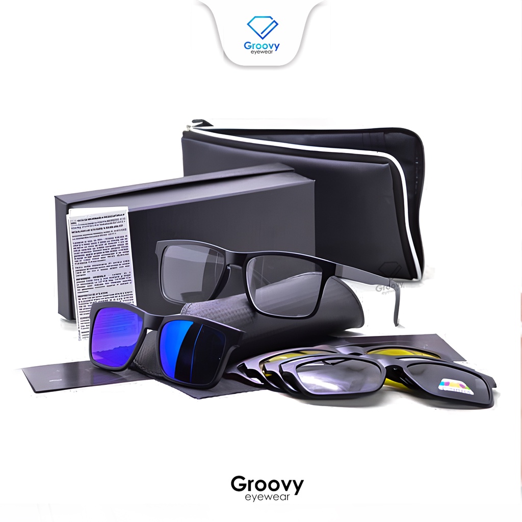 Groovy Eyewear - Kacamata Jhon Minus Clip On Lensa Anti Radiasi Kacamata Sunglass Kacamata Hitam