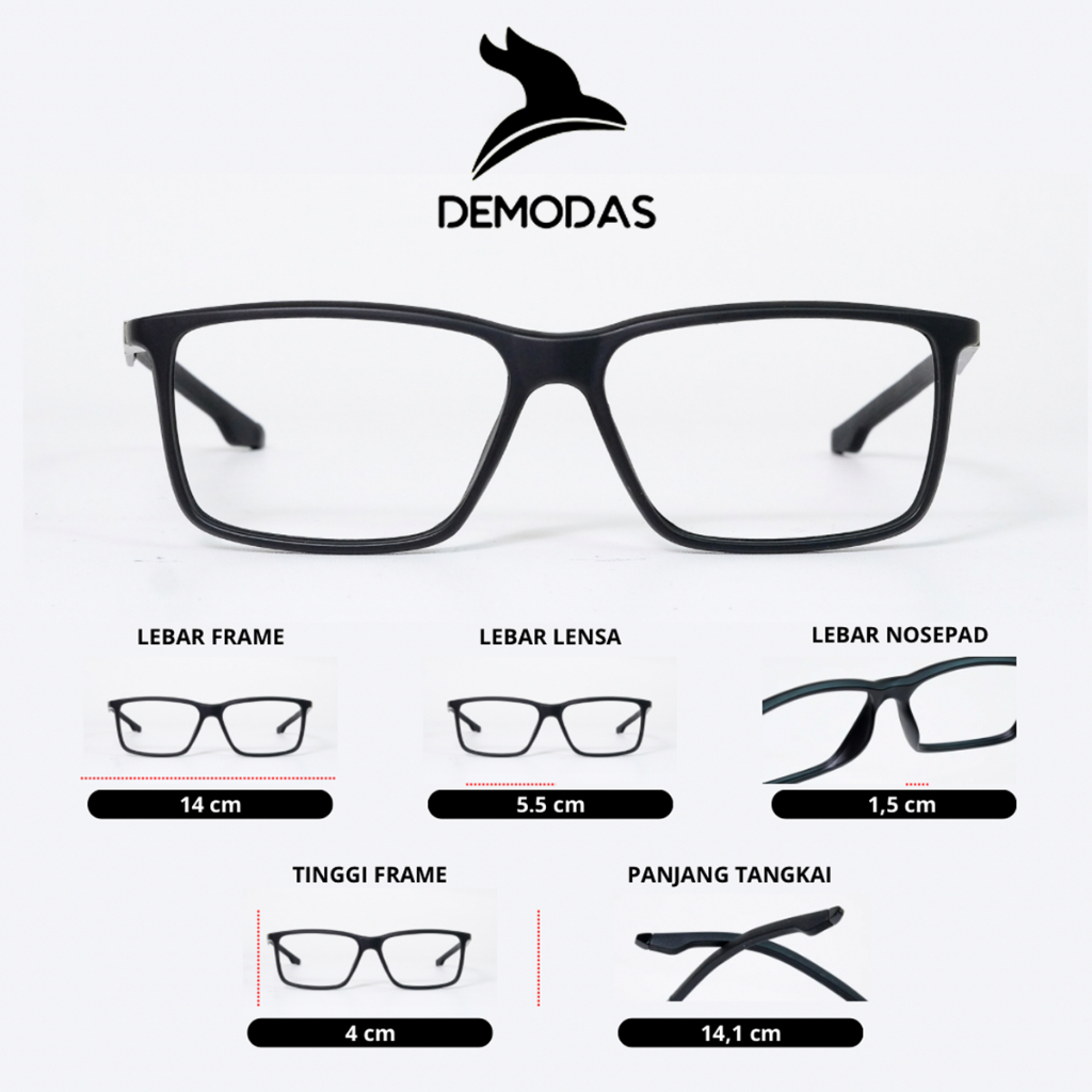 Demodas - Frame DOS3218 Lensa Bluechromic All Size Pria Wanita