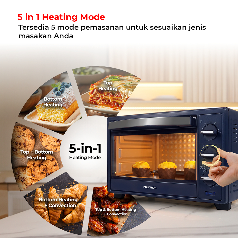 Oven Listrik 22 Liter Polytron PEO 22 B1B Kitchenmate dengan Konveksi