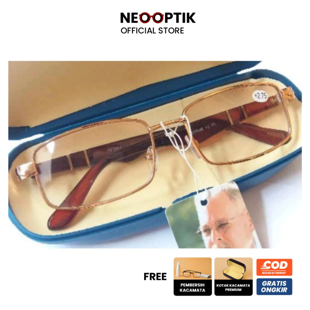 NEO OPTIK | ORI Kacamata Plus Baca Dan Jalan Teduh 2 In 1 Double Fokus Free Kotak + Lap Unisex (Hitam Bening)