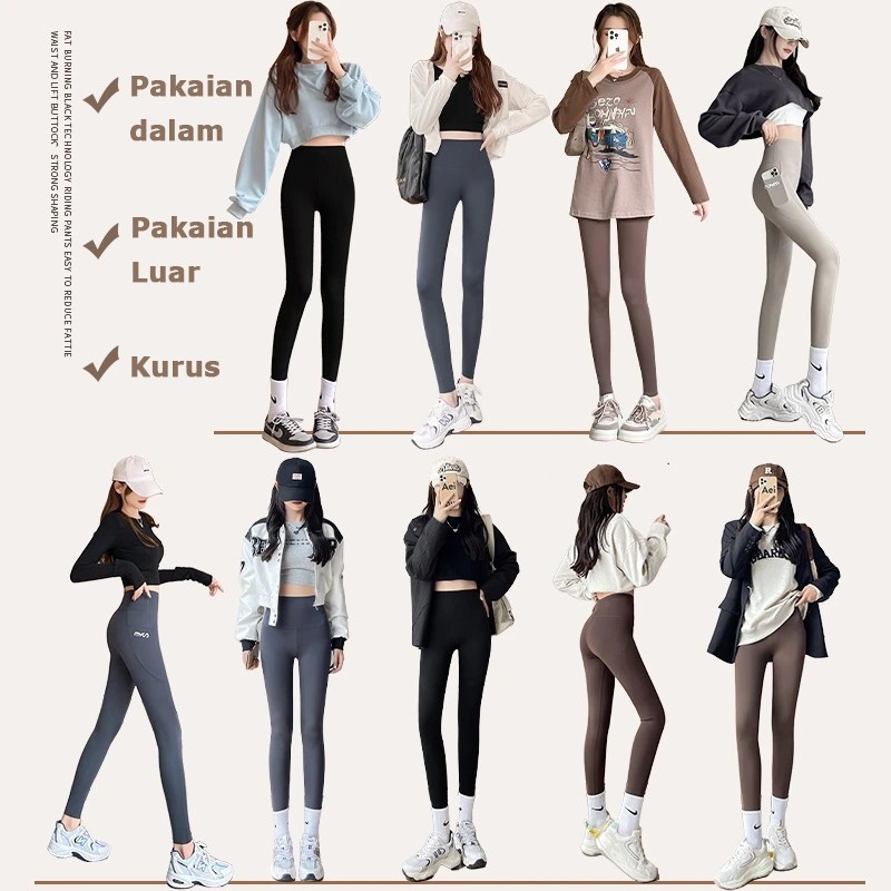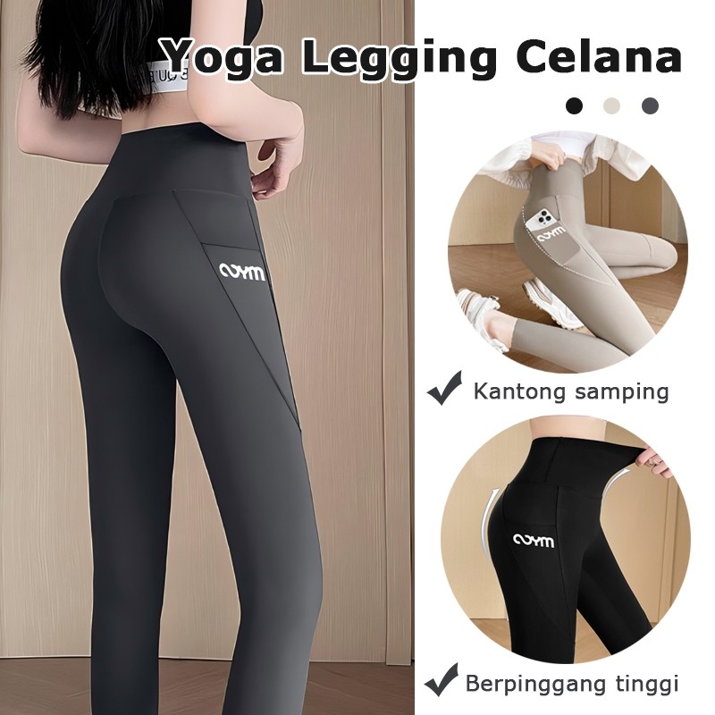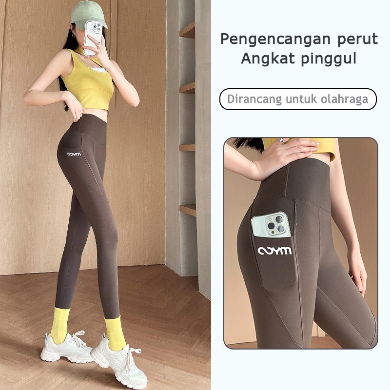 Celana Olahraga Yoga Wanita Saku Legging Celana Kebugaran Pakaian Outdoor Sport 998