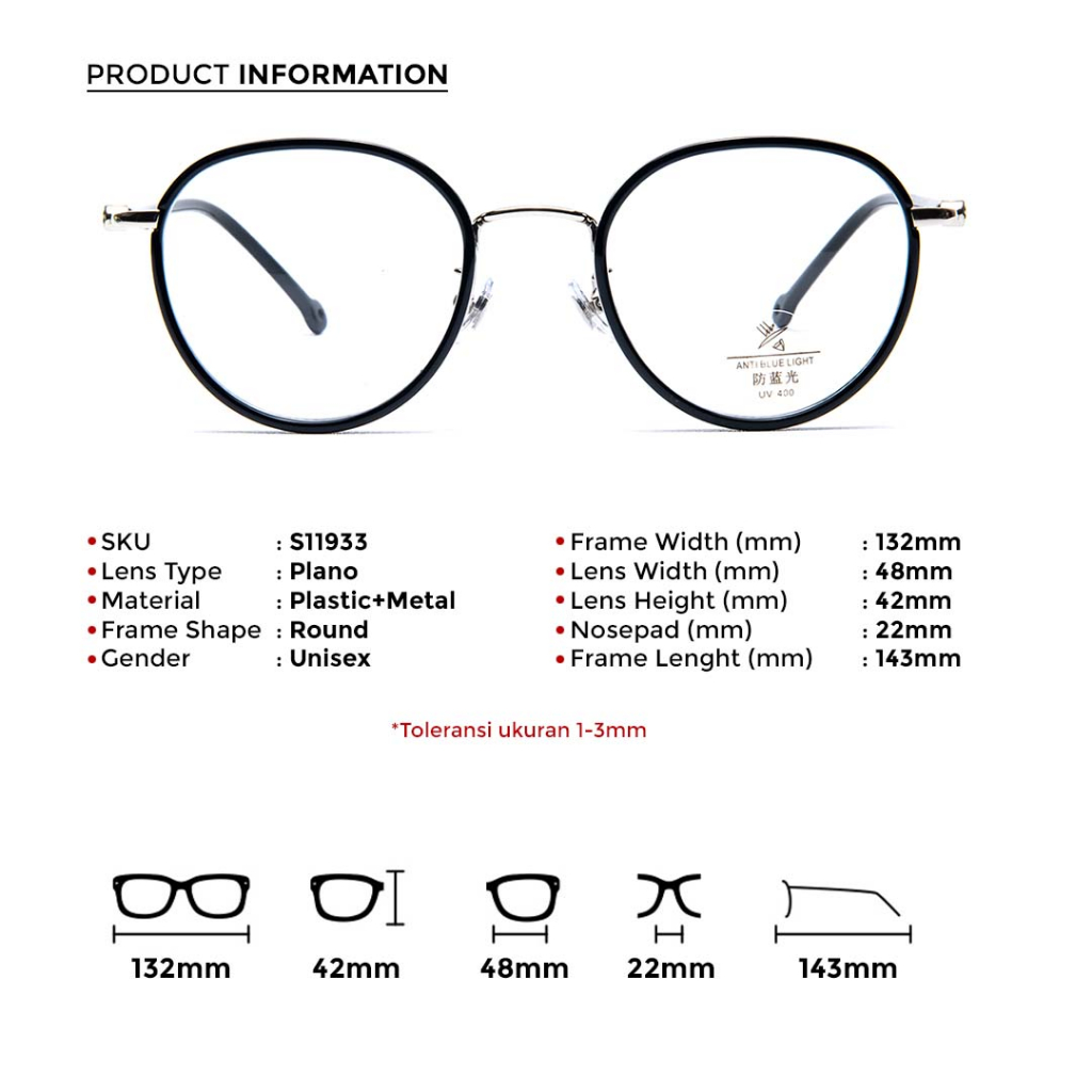 Berrybarton Kacamata Bulat Anti Radiasi Photocromic Blueray Kacamata Minus Plastik Metal Pria Wanita 11933