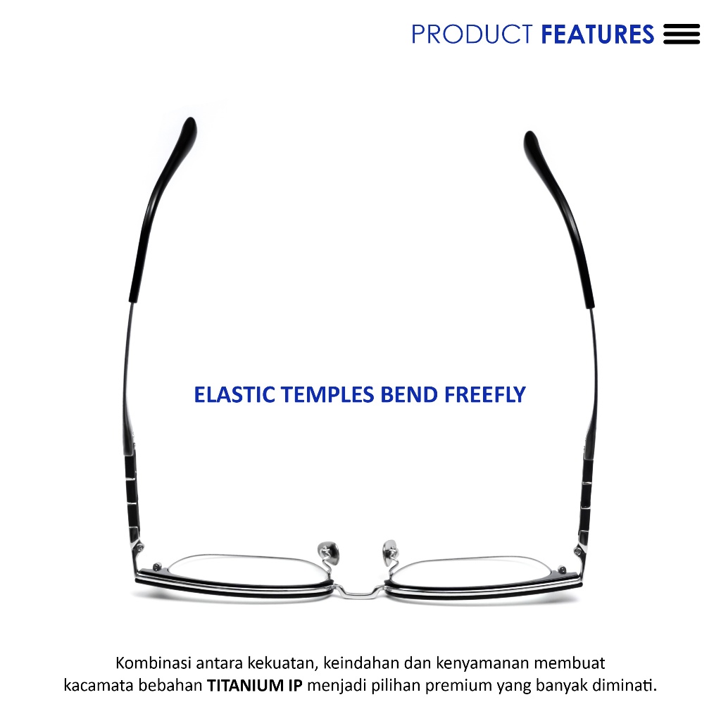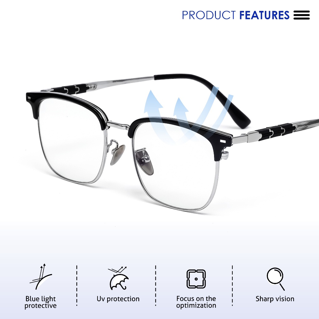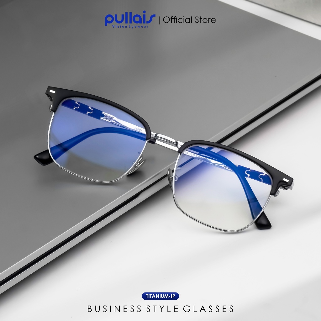 Pullais Eyewear Kacamata Minus Photocromic Blueray Anti Radiasi Bluecromic Kotak Half Rim Titanium-IP Fashion Pria Business