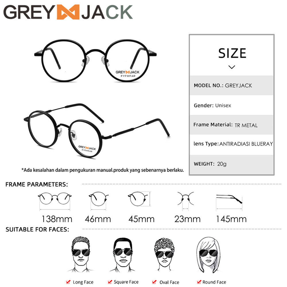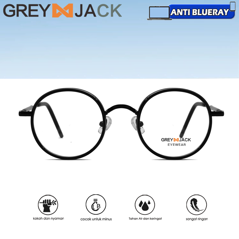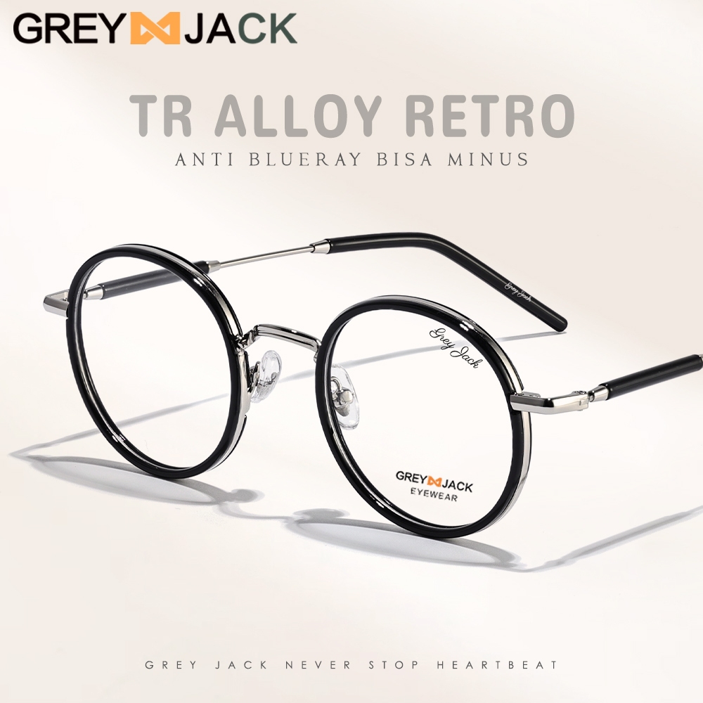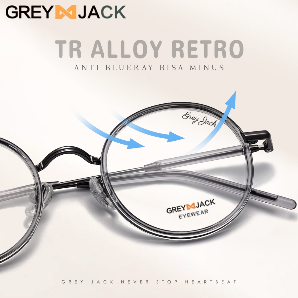 Grey Jack Kacamata Antiradiasi Blueray Bulat TR Metal Retro Pria Wanita Bisa Minus Antiradiasi Blueray Photocromic Bluecromic 1211