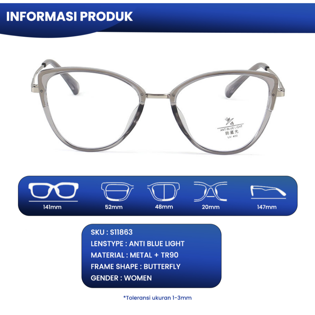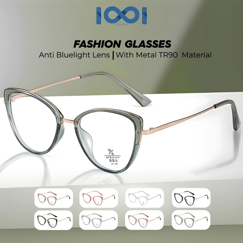 IOOI Kacamata Cat Eye Wanita Fashion Photocromic Bisa Minus Anti Radiasi Blueray Terbaru S11863