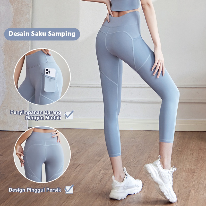 Youmi Celana Legging Olahraga Wanita Highwaist Panjang Jumbo Yoga Pilates Gym Kantong Polos Terbaru Premium Leging Booty
