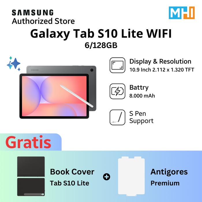 SAMSUNG GALAXY TAB S10 LITE 5G/WIFI 6/128GB, ORIGINAL, GARANSI RESMI - WIFI 6GB_128GB GRAY + BOOK COVER