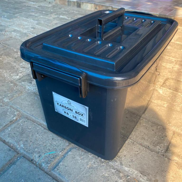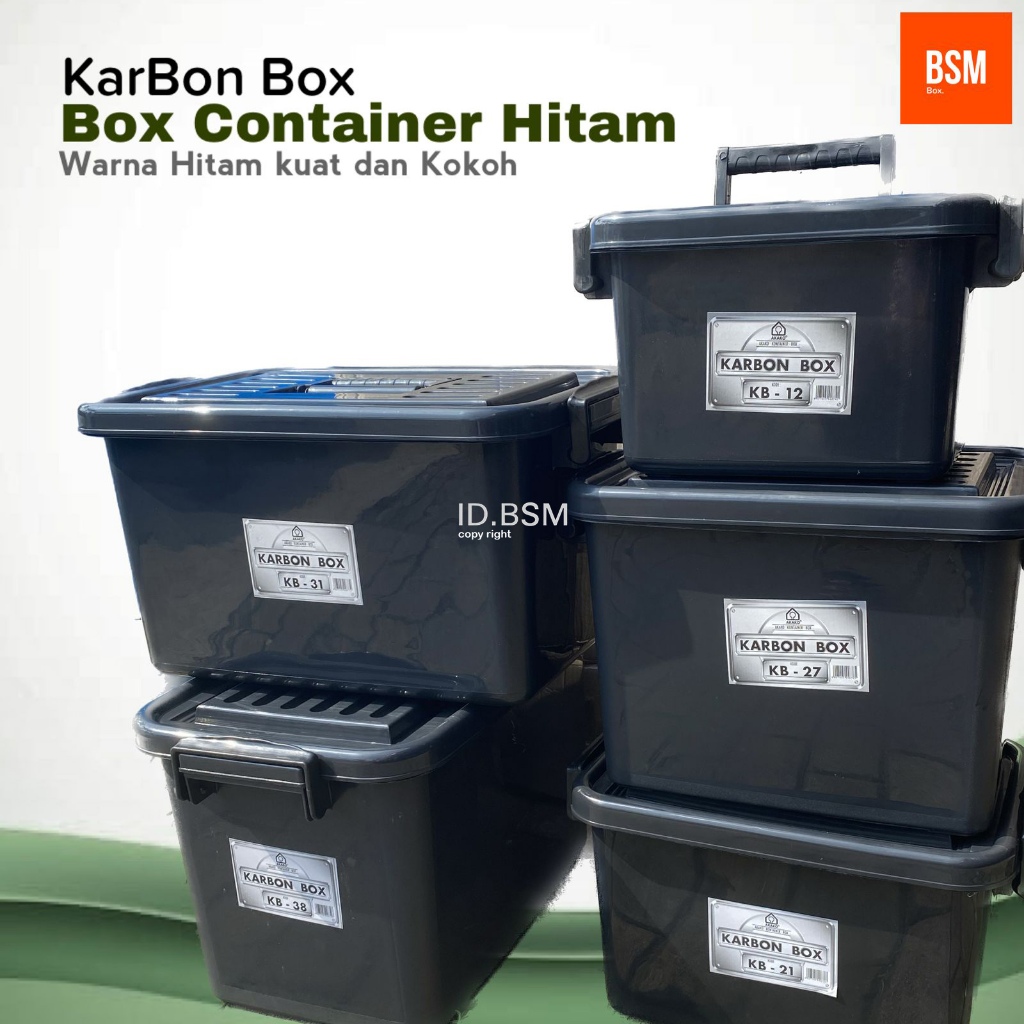 Kotak penyimpanan Container Box Plastik Ukuran KB 38-31-27-21-12 Liter Tempat Penyimpanan Serbaguna Karbon Box Hitam Ter