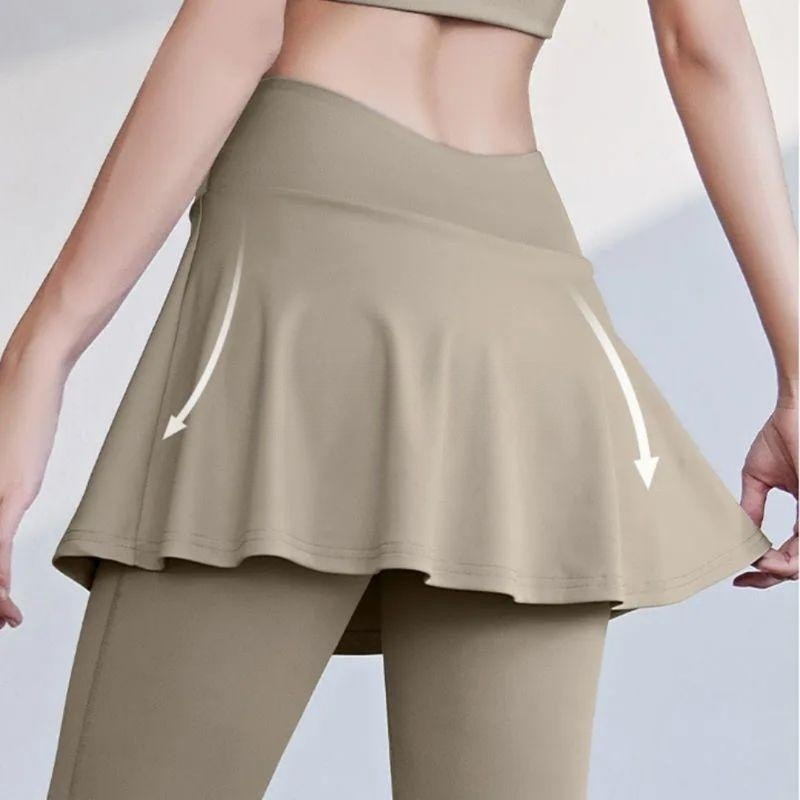 Legging Celana Olahraga Wanita Rok Celana Skirt High Waist Polos Yoga Dua Lapis Gym Tennis Running Sport