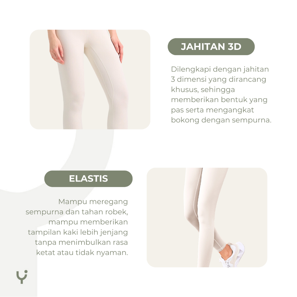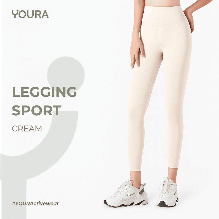 Youra - Legging Celana Olahraga Wanita High Quality Cream