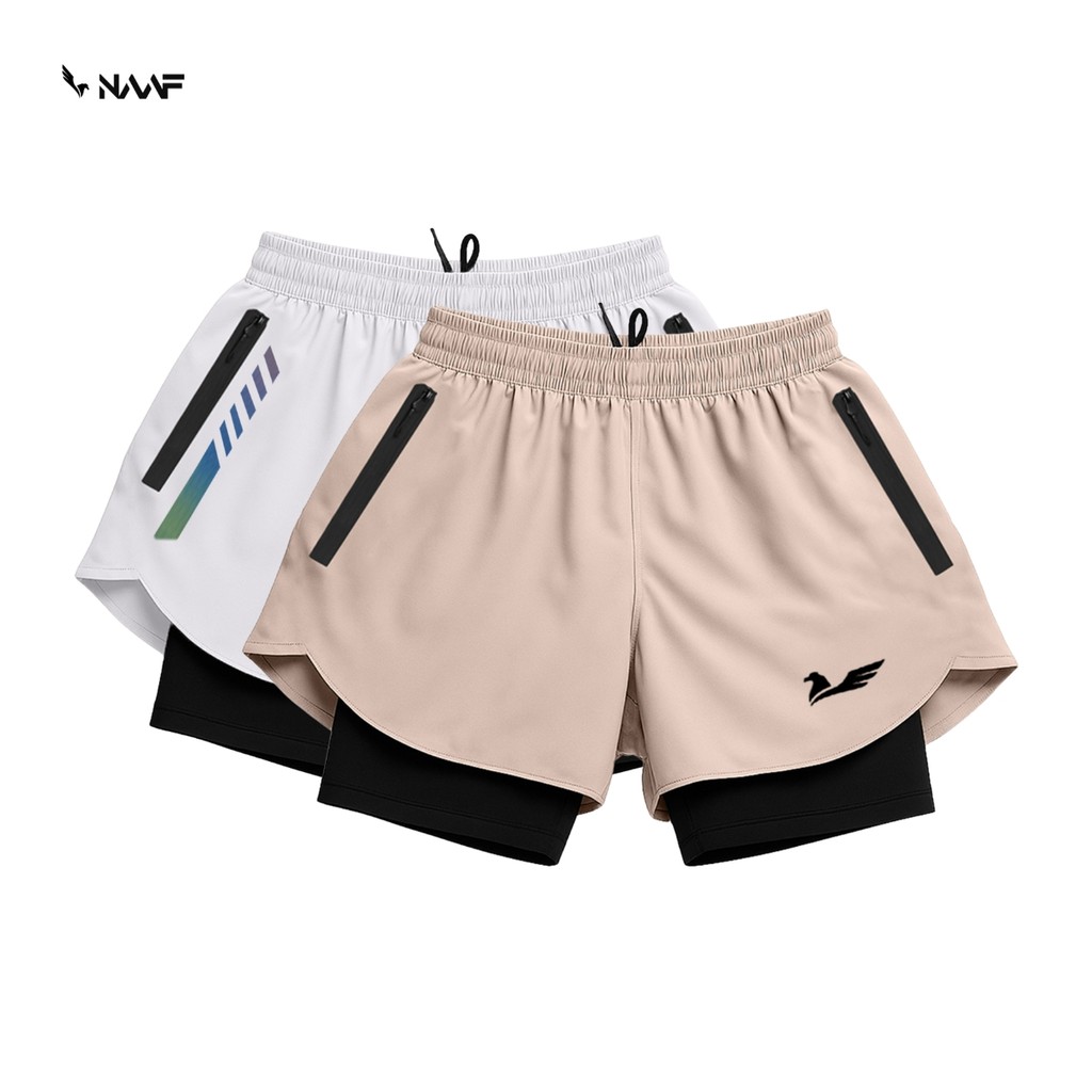 Naaf - Celana Pendek 2In1 Legging Wanita Olahraga Lari Jogging Badmintoon Running Pinggang Full Stretch Premium