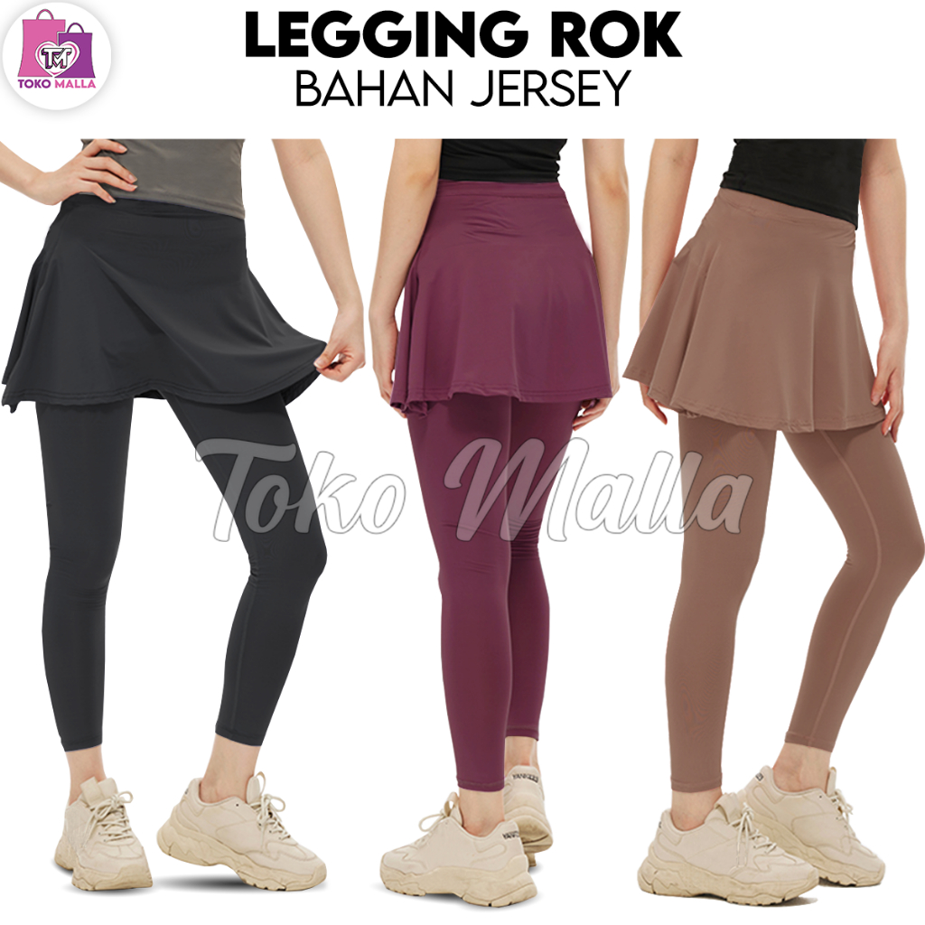 Legging Rok Celana Olahraga Wanita 2In1 Sporty Bawahan Senam Casual Streach Melar Elastis Gym Sport Pakaian Renang Lejin