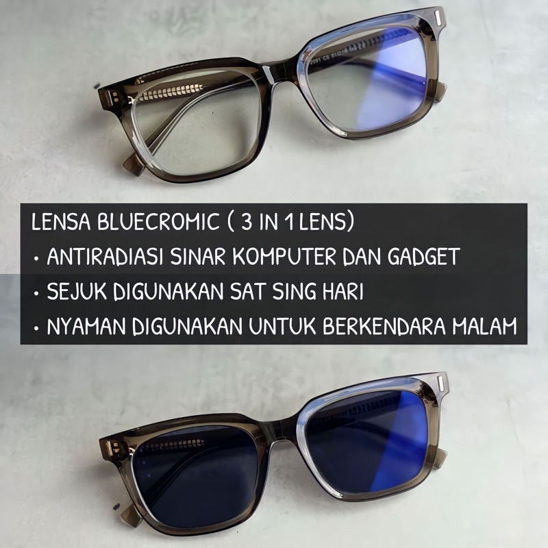 Kacamata TR90 Acetate Premium Quality Lensa Antiradiasi Photocromic Blueray Bluecromic + Paket lensa normal dan minus cylinder