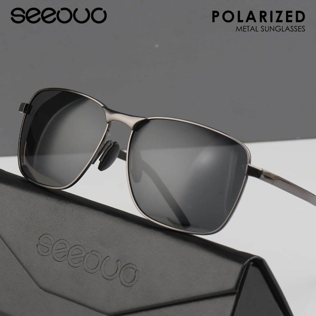 Seeouo Kacamata Hitam Sunglasses Polarized Anti UV Silau Model Kotak Fashionable Elegan Bahan Metal Kokoh Pria 2462