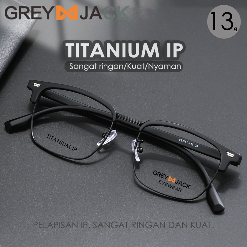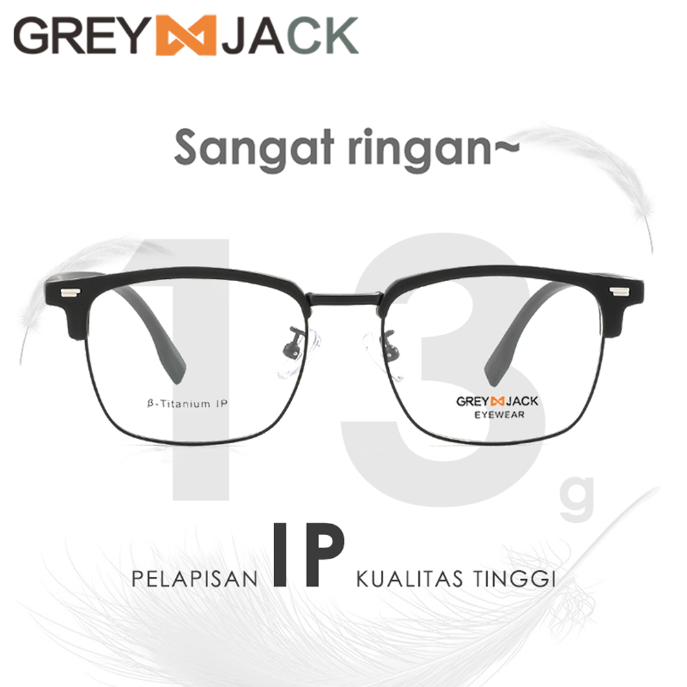 Grey Jack Frame Kacamta Model Kotak Style Simple Bahan Titanium Ringan dan Kokoh Bisa Minus Antiradiasi Blueray Photocromic 152